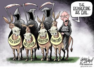 Liked the Auto Rifle toon. actually had someone ask me if AR stood for Automatic Rifle and I told her that it was ARmalite which is the name of the company that makes them. She is a conservative and her liberal friends must have tried making her drink the koolade. I also had to explain to her the differenceses between semi and full auto. Her husband, an Army Vet must have forgotten what I mentioned. Two women conservates and two male conservatives and one female liberal whom I go out with, voted for biden and regrets it and tells me if the trumpster runs, he’s got her vote. Whole thing took place while the 5 of us were at a diner.