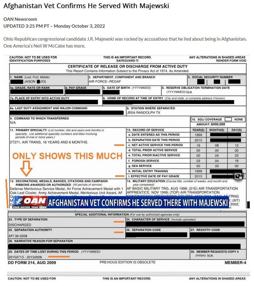 One American News reviewed the retired Air Force NCO’s DD-214 and agreed to protect his identity given his concerns for the safety for himself and for his family. Calling himself “Jason”, Majewski’s battle buddy said, “Reporters were unfair to Majewski, considering that record-keeping was not a priority in those days, and trying to update incomplete military records is a nightmare.
