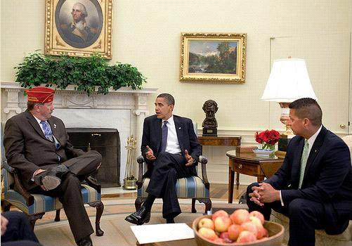 The American Legion National Commander, David K. Rehbein met privately with the President this morning and left with a promise that the President will keep his hands off of Veterans’ care in his bloated, sweeping plan to rope the rest of America into something they don’t need;