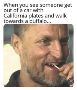 I grew up in Wyoming watching stupid tourists. I can testify that the Woody Harrelson meme is absolutely true. It also applies to elk, moose, and those cuddly little bears.