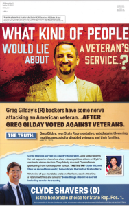 The PAC doubled down on the lies and accused his opponent’s “backers” of “attacking an American veteran in a mailer that was sent out after the revelations went public. In the latest mailer, Shavers wrote “Greg Gilday and his fat-cat supporters launched a last-minute political attack on Clyde’s service to win an election,” adding that Gilday had “some nerve attacking an American veteran.”