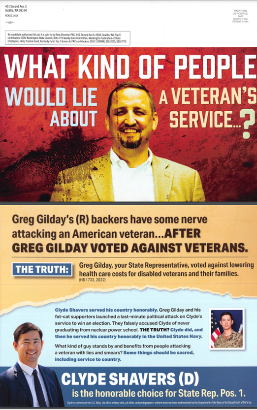 “What kind of people would lie about a veteran’s service?” This question showed up on a New Direction PAC campaign advertisement supporting Clyde Shavers. A website, “shaversserved.com” states, “Republicans are smearing the record of a man who has served our country.”