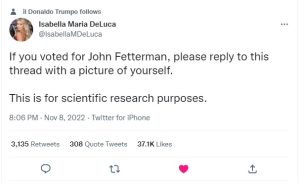 Maybe his margin of victory was delivered by the dead as well as the brain dead. But I suspect the mail in ballot mules were likely out in full force. That would also explain “Lumpy” Fetterwoman. The brain-dead voting for the brain damaged.