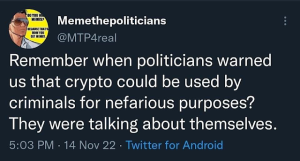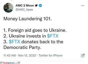 And certainly the Ukraine never invested in FTX so that is a complete fabrication. This kind of mars the issue of a straight up bribe to the Dems to keep out of regulation of crypto.