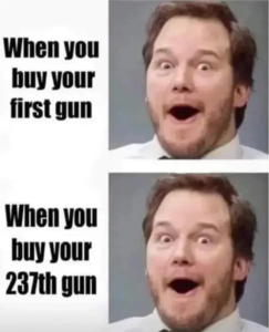 I like the 237 guns toon. Their like two coat hangers in a closet one day and some time later the closet is opened and there are like 20 coat hangers there which multiply like rabbits I hare to say.