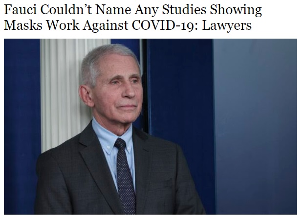 Doctor Anthony Fauci was asked if he knew of any studies that supported the effectiveness of wearing masks. He apparently was not able to point to any reference supporting such. Ironically, he co-authored a study that indicated that the majority of deaths during the influenza pandemic, that started in 1918, was due to pneumonia. Although masks were not mentioned in the study, the reader could tell that the problems that contributed to strengthening of pneumonia and the weakening of the immune system implicated the wearing of masks during that pandemic. Enjoy your weekend.