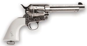 The pic above is of one of his sidearms. Some say he wore a matched pair of Colts; in actuality he carried a S&W .357 Magnum on one hip and a Colt Single Action Army (aka a “Peacemaker” or “Model P”) on the other. Might be noted, at that time, those were the two most powerful handguns available. He had style. When asked whether those white grips were pearl, he was said to have responded “No, these are ivory. Pearl handles are for pimps.”