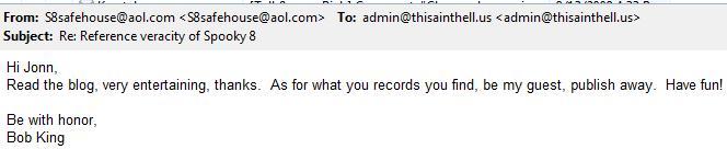 You might remember the book review I did earlier in the month on Spooky 8; the final mission, and the review of the author that I wrote earlier this week. I mentioned that I’d emailed the author, Bob King to see if he had anything to add. Well he answered last night;