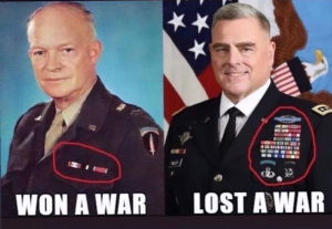 While the above picture of Ike wearing his top three ribbons and Milley looking more like a North Korean general is comical, Eisenhower actually had a similarly impressive rack. Of course he was a veteran of two world wars, and if he were to wear his foreign honors he’s got several dozen ribbons. Anywho, I digress.
