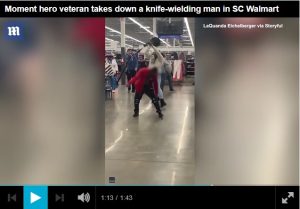A hero military veteran jumped into action to take down a knife-wielding man threatening to stab shoppers at a South Carolina Walmart – by smashing him over the head with a metal pole.