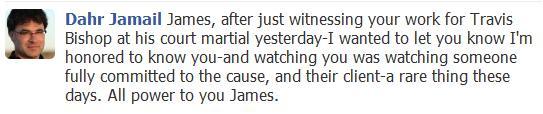 You’ve probably been wondering who is defending these “resisters” who are being prosecuted by the military during their court cases. For Victor Agosto, Travis Bishop, Robin Long, Cliff Cornell, and pot smoking deserter Ryan Jackson, it’s been James M. Branum, who calls himself the GI Rights Lawyer. He’s also a co-chair of the Military Law Task Force branch of the communist National Lawyer’s Guild.