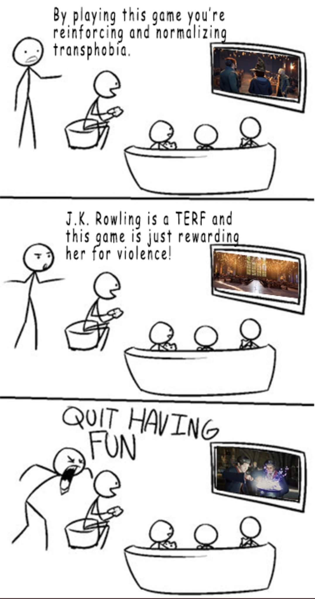 My g’son bought the game BECAUSE OF the comments against JKR. He ain’t no woke fool