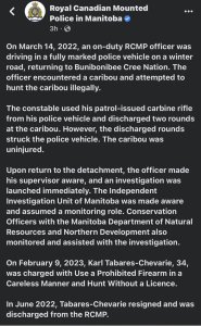 The Mountie should have continued his mission of delivering “Alaska Bob’s” paperwork and not went hunting. Now he’s hunting for a job.