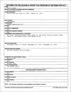 FOIA Results – NPRC – Verlon James – Summary Sheet