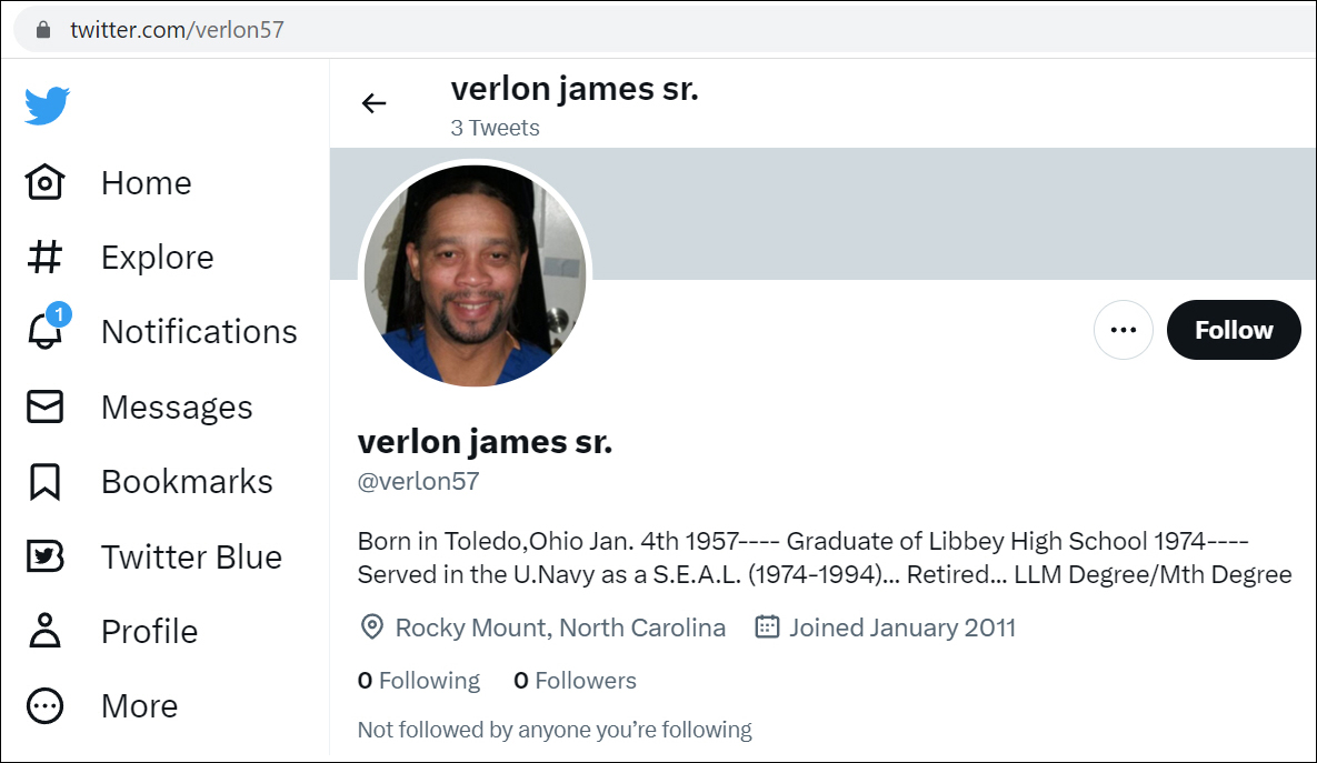 Verlon Clinton James Jr of Toledo Ohio, also known as Verlon Clinton James from Rocky Mount, North Carolina, was not a SEAL.