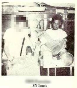 There is a photo in the Commissarymen section of the 1975 USS Halsey (DLG-23/CG-23) cruise book. Here, a photo shows SN James operating a meat slicer. It would be hard to be a SEAL in Vietnam in 1975 while serving as a Commissaryman on board the USS Halsey. Here’s an article in 2002 where James talks about registering as a sex offender. James is quoted in the article…