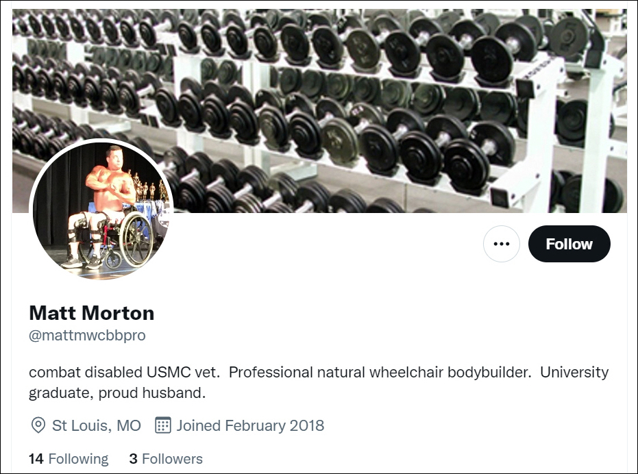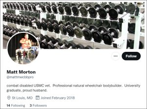 Again, we found it most interesting that Morton did not seem to exhibit the combat-related disabilities that are at the center of his bodybuilding principles that limit him to a wheelchair.