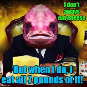 I tried to use Bing AI image generator to recreate “The Most Interesting Man” with a blobfish head and cheese on the table. This was one of the results. Enjoy your weekend!