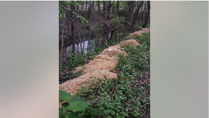 Pictures of the pasta — which has since been hauled away from the banks of the Iresick Brook, with the Department of Environmental Protection reporting no harm — went viral on social media this week.