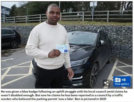 “Ben said he was given a blue badge initially after losing his leg in Afghanistan in 2008 to get him through rehab. But this was taken away by Plymouth City Council less than a year later. ‘I set myself a challenge to run the marathon a year after my injury and as soon as I ran to the finish line it was taken off me.'”