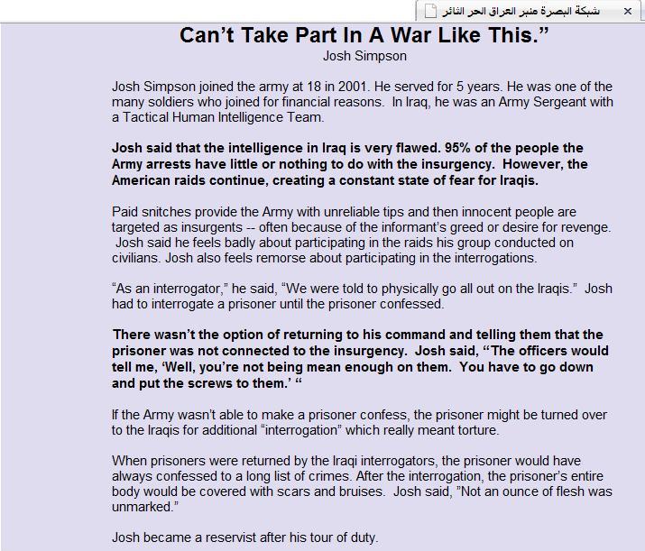 So I did a little research on Joshua and found that he’d claimed to be an interrogator a few times in the media – like this interview from Dahr Jamail last year;