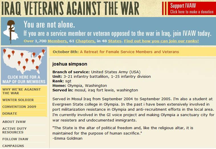 He is however a poster child for the IVAW and for the “search for what [Vet] projects truth to be”