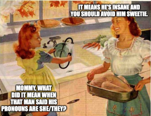 That “pregnant man” they are trumpeting with “see – a man CAN get pregnant” is a TRANS guy, ie: still has all the female plumbing. Technically, what we call a “pregnant female”.