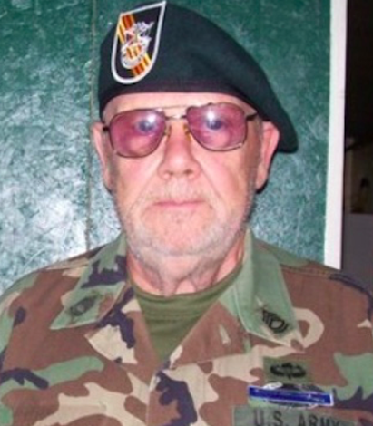 Most of the discussion about him is based on the awards on his uniform – Combat Action Badge, 5th Special Forces Group Flash, Ranger Scroll + Ranger Tab, Special Forces Tab, plus all the combat claims.