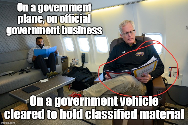 Working in the US Army Signal Corps requires a knowledge and acceptance of responsibility regarding the handling of classified materials in any form- electronic, hard copy, voice, etc. Young privates right out of AIT, with little to no experience, stand a possibility of going to prison for violating these TTPs. There is no way that these career politicians and their vast staffs, that also have to take training and acknowledge an understanding of the TTPs – don’t know what they did was wrong. It pisses me off that they thumb their noses at the rules and laugh in our face about it, and some poor kid could go to prison and have the rest of their lives basically ruined over what could have been an honest mistake. A former President has been arrested for what will probably turn out to be BS while a former SoS and senator/VP actually did what he is accused of. OH, and BTW, they weren’t allowed to have the materials like the former President was. They didn’t have the legal authority to declassify the materials like he did.