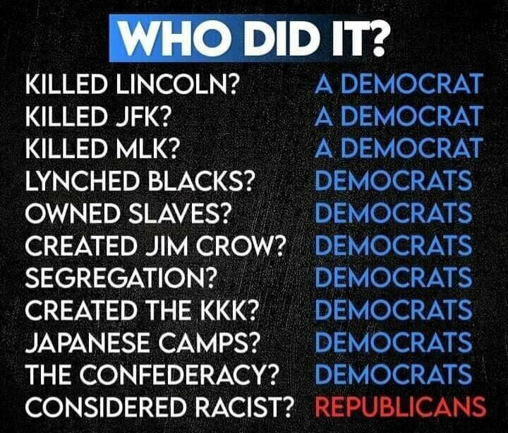 When did you go through high school? I graduated in the late 1980s, they covered Dred Scott, the topics that I mentioned above, as well as other topics, and the Democrats were implicated with these acts.