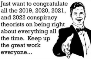 When conservative arguments are mostly, if not completely, labeled as “conspiracy theories,” these “conspiracy theories” are bound to turn out to be true. I posted long range weather/climate related topics here that would be subject to the “conspiracy theory” label.