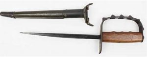That WWI trench knife is strictly for stabbing with its triangular blade. Amazing how much they have gone up in value in the last 25 years. I paid about $350 for mine, and now people want $800 for one in decent condition with a scabbard. The most common maker is Landers, Fray and Clark, who also made the Patton saber I own.