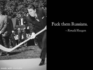 Close enough, the Gipper set out to take down the Eastern Bloc and succeeded. Not many people know that shortly before he left office RR declared the Cold War over and we had won. The media explicitly said it showed he was demented. But he was right as rain.