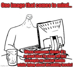 Ninja brings to us one Charles Adams, a veteran who successfully obtained VA benefits for “serious” disabilities. He appeared at his examinations showing physical limitations that convinced the examiners that he rated the disability that he desired. Unfortunately for Charles Adams, he saw the need to demonstrate his strength on social media while engaging in strenuous exercises. High level resistance workouts for the internet, low level physical performance for his compensation examinations.
