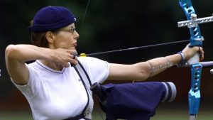 I thought that archery babe looked familiar- Geena Davis. Heard she was a hardcore archer, who almost made the Olympic team.