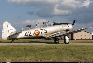 I got to see this particular aircraft fly just two weeks ago. It was part of a group of Texans doing formation flights around the Flying Cloud Air Expo just outside Minneapolis. The plane was built by Boeing during WWII, exported to Canada, and found its way to Spain, before being sold into private hands. It still wore the Spanish roundel and markings.