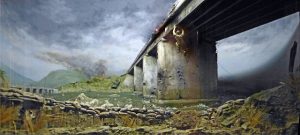 “Charles Waterhouse’s painting depicts Capt. John Ripley dangling from the bridge to thwart the advance of the North Vietnamese Army. Image courtesy of the US Naval Institute Archives.”