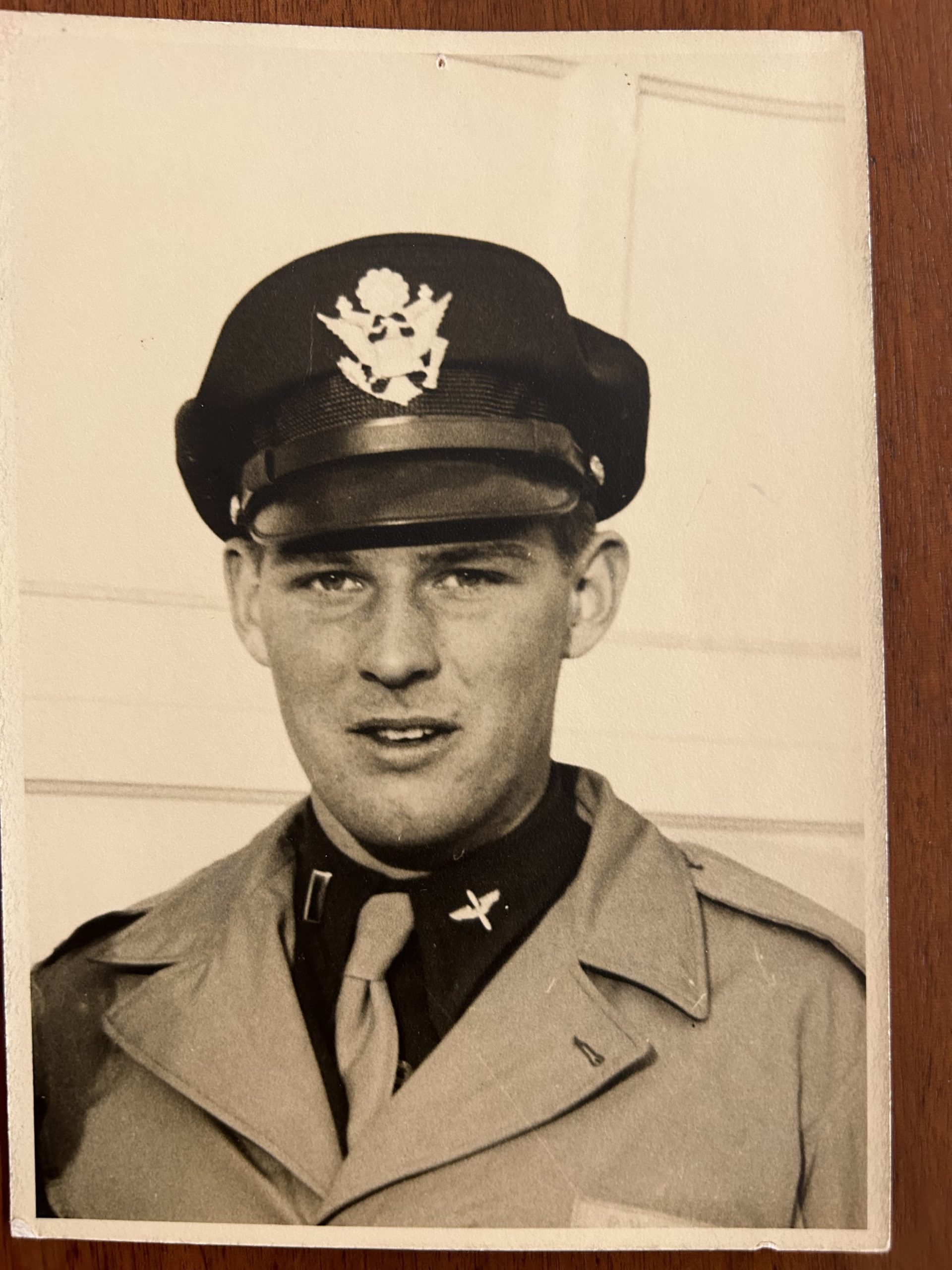 In the attached picture, a newspaper article stated he had an Air Medal with five Oak Leaf Clusters, began his flight training in May 1943 and received his Commission and wings in February 1943.