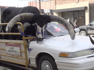 The driver was identified as Lee Meyer of nearby Neligh and police performed a traffic stop on his car. Meyer told them that the Watusi bull’s name was Howdy Doody.
