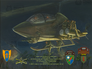 Taylor says, “I heard the plink of enemy bullets as they found their mark on my Cobra and returned in kind. No one shot at me twice. No one ever shot at a Cobra twice. Miniguns ripped the air with a stream of lead and rockets smashed the ground with explosive death, but the enemy refused to surrender with their prey so close.”