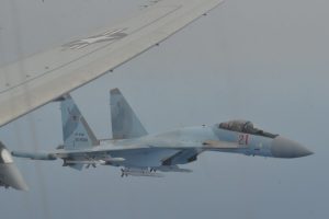 The baseline Su-35 borrows the airframe of the Su-27 fighter but adds a new digital fly-by-wire flight control system, three-dimensional thrust vectoring nozzles and uprated AL-41F1S engines pumping out roughly 32,000 pounds of thrust each.