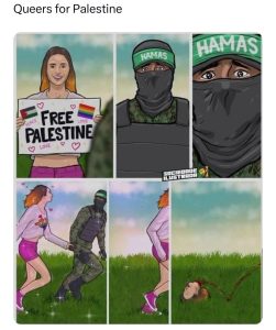 Queers for Palestine must be the most stupid sign I have ever seen. Do they know what happens to the alphabet people in that part of the world?