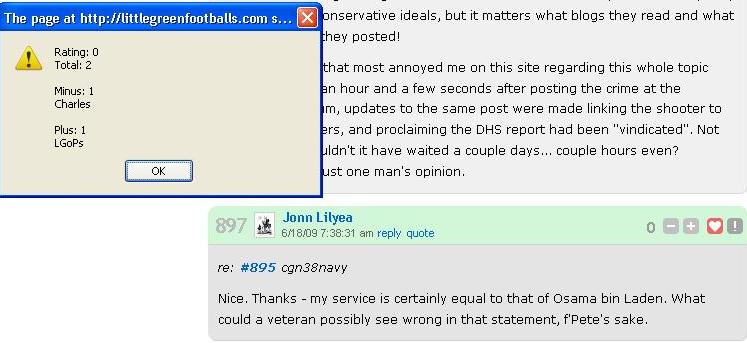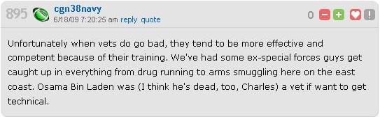 Well, I visited his site a few times that night after he posted a link to my post to see what folks were saying and I found this comment supposedly from a veteran;