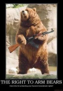Somebody tripping their azz off…flying monkeys (insert any of the hordes of invaders we’ve seen over the last few years)…or uniformed domestic enemies…(“I could fill a hundred ditches…”)…Big Red, my ’06 F150 has pretty good high road clearance. I do wonder if the trailer hitch would get caught up in the chain and what would tear loose FIRST (nod 2 Tox). The hitch? The chain? The limbs of the protesters? Mr. Bear exercised his right of Castle Doctrine. Let sleeping bears sleep.