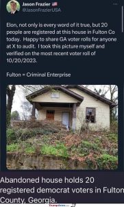 The one about the abandoned house in Georgia with the 20 registered Demotarded voters disgusts me. This in no way is an accident and is what is wrong with our election system.