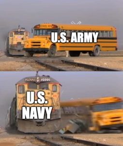 Someone seems to be a Navy fan! Navy 5-6 (Lost to Air Force 17-6), Army 5-6 (Beat Air Force 23-3)…I think your analogy would have been better showing the speed of a train and a bus.