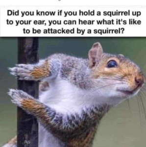 Squirrel, barney fife, learning sign language. All good this morning but those stand out.