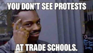 “You don’t see protests at trade schools.” 🛠️