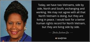 I thought Hank Johnson was the dumbest congress rat, SJL is a code second. She thinks North and South Vietnam are two separate countries. She remarked about how they get along fine now, living side by side.