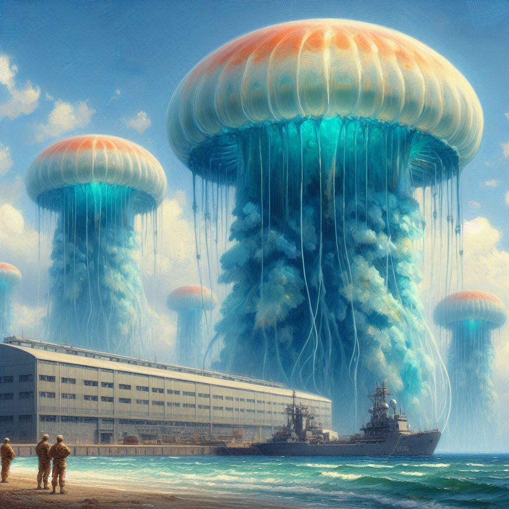 They had one of those blimps at Al-asad when I was there. I called it the “Eye of Sauron.” Never saw any flying jellyfish though…
